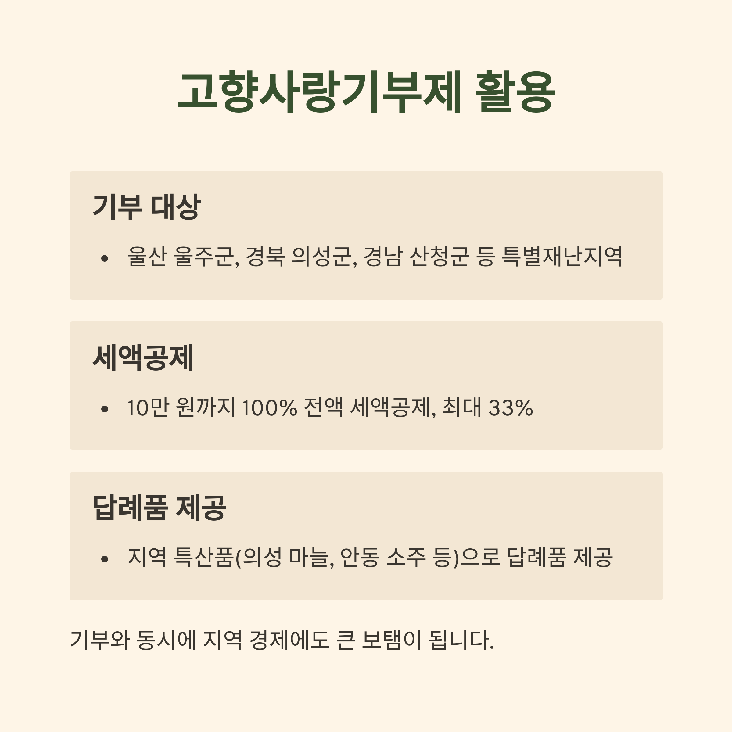 | 세액공제 | 기부 시 세금 혜택으로 실질적 부담 감소 |