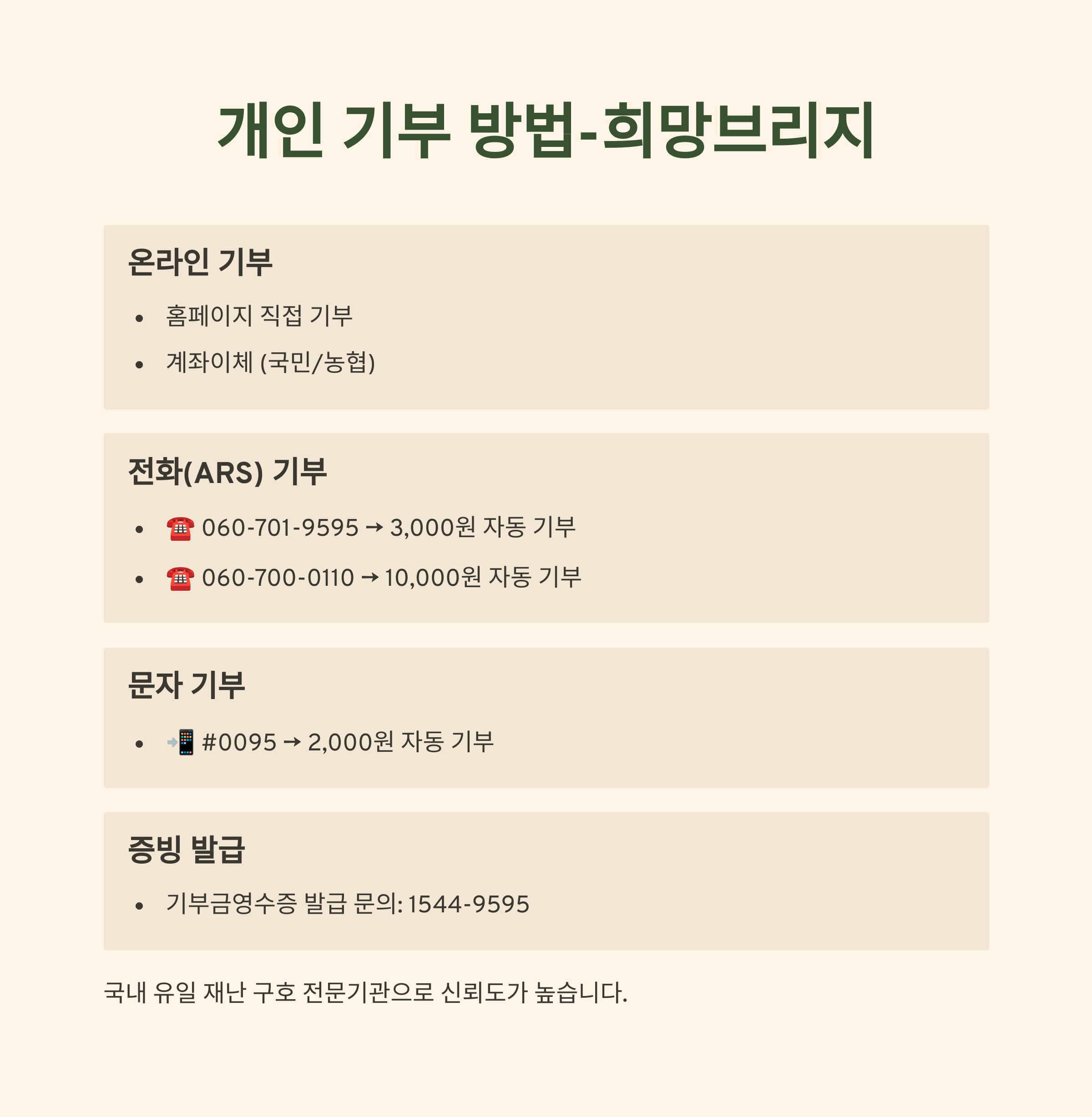 | 공식 사이트에서 기부 확인 및 영수증 발급 | 2025년 조세특례제한법 개정 내용 반영 | 실시간 참여 및 모금 현황 확인 가능 |